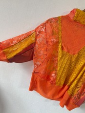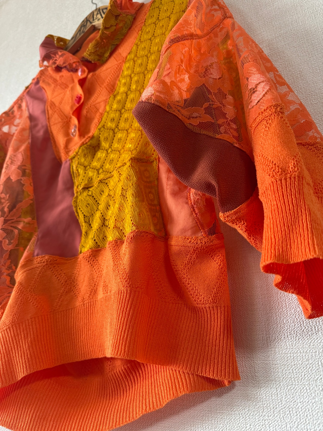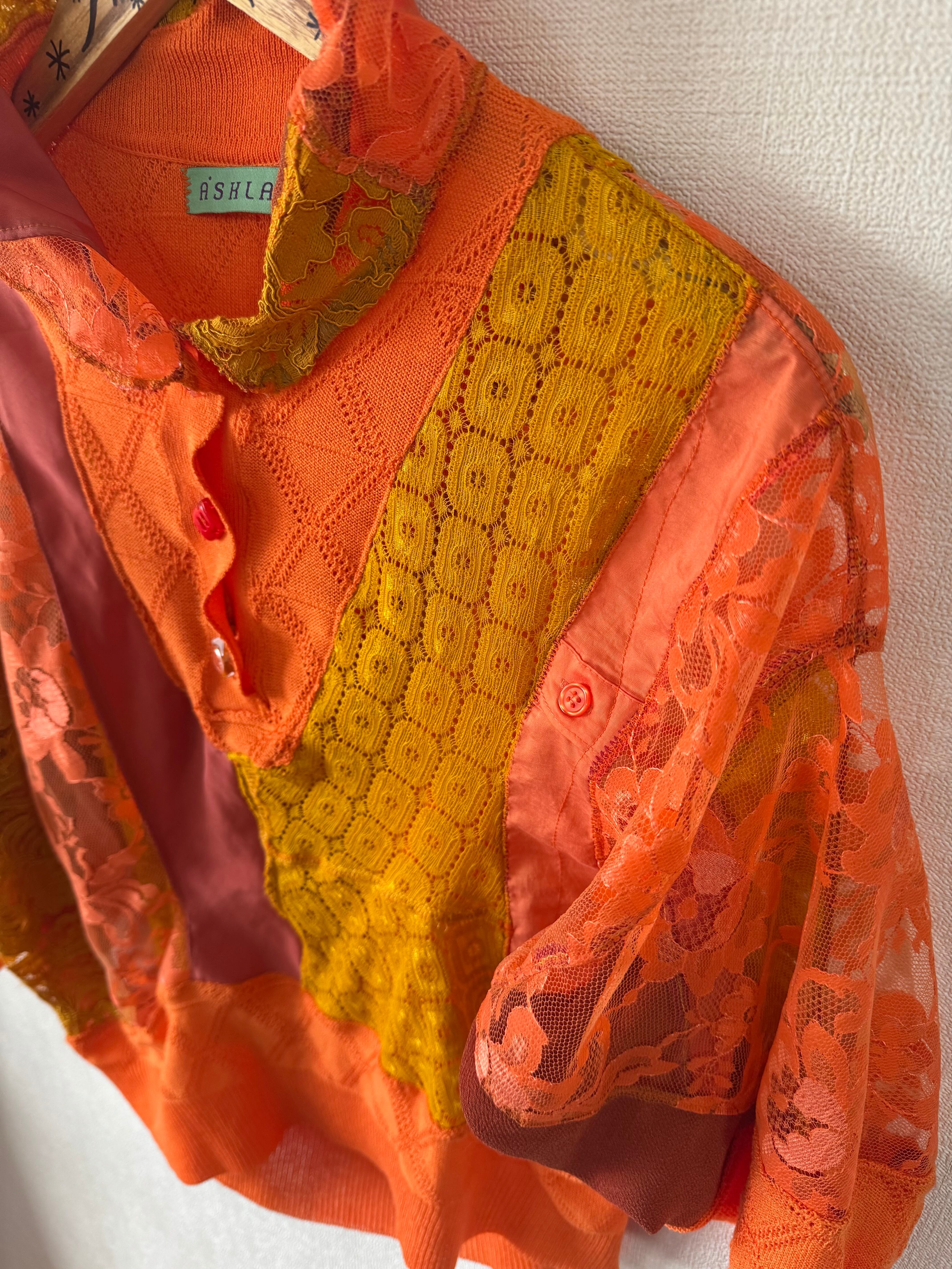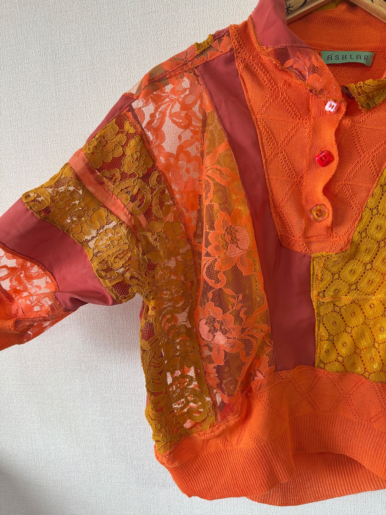 透け感のあるレースが軽やかで、オレンジやマスタードの暖色トーンが気分まで明るくしてくれる1着✨