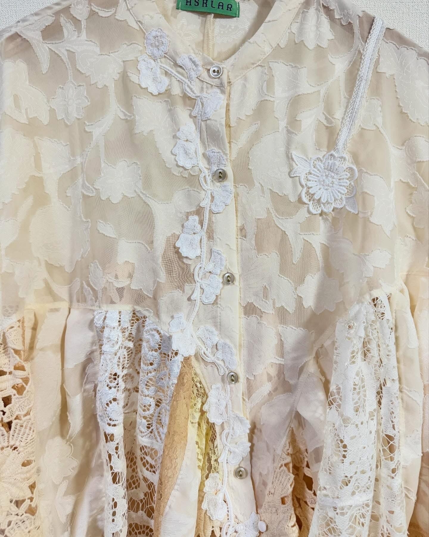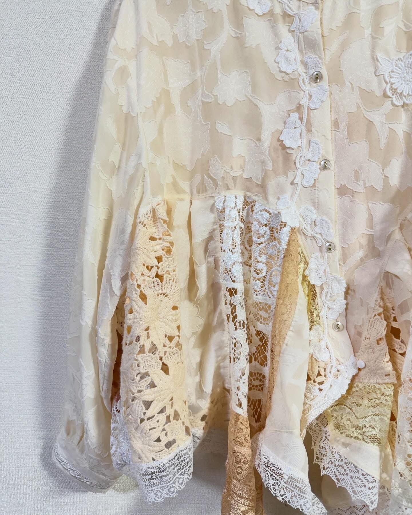 こたらもたくさんのレースを使用したまるで“着るコラージュアート”みたいな一着☺️