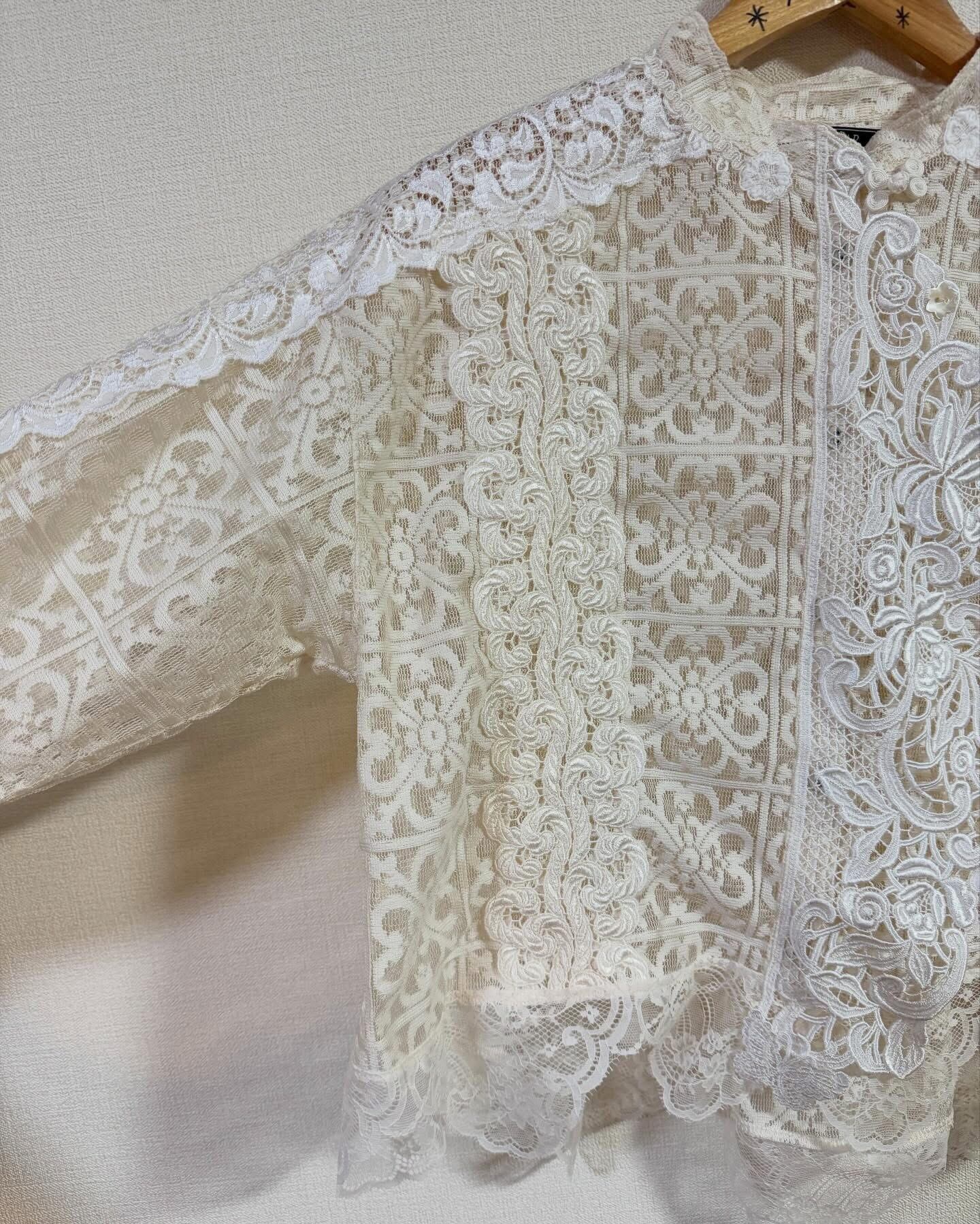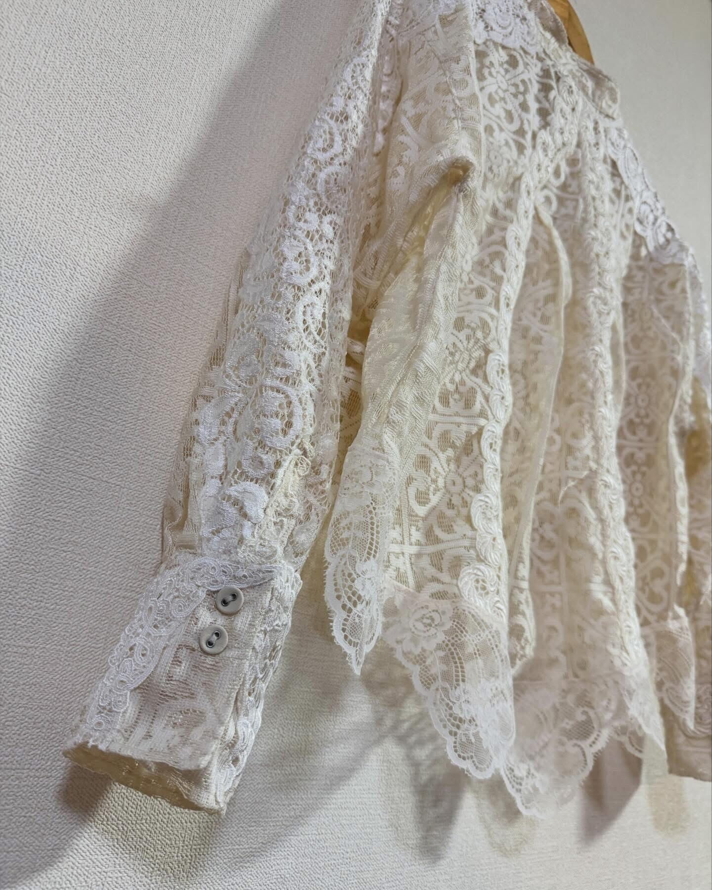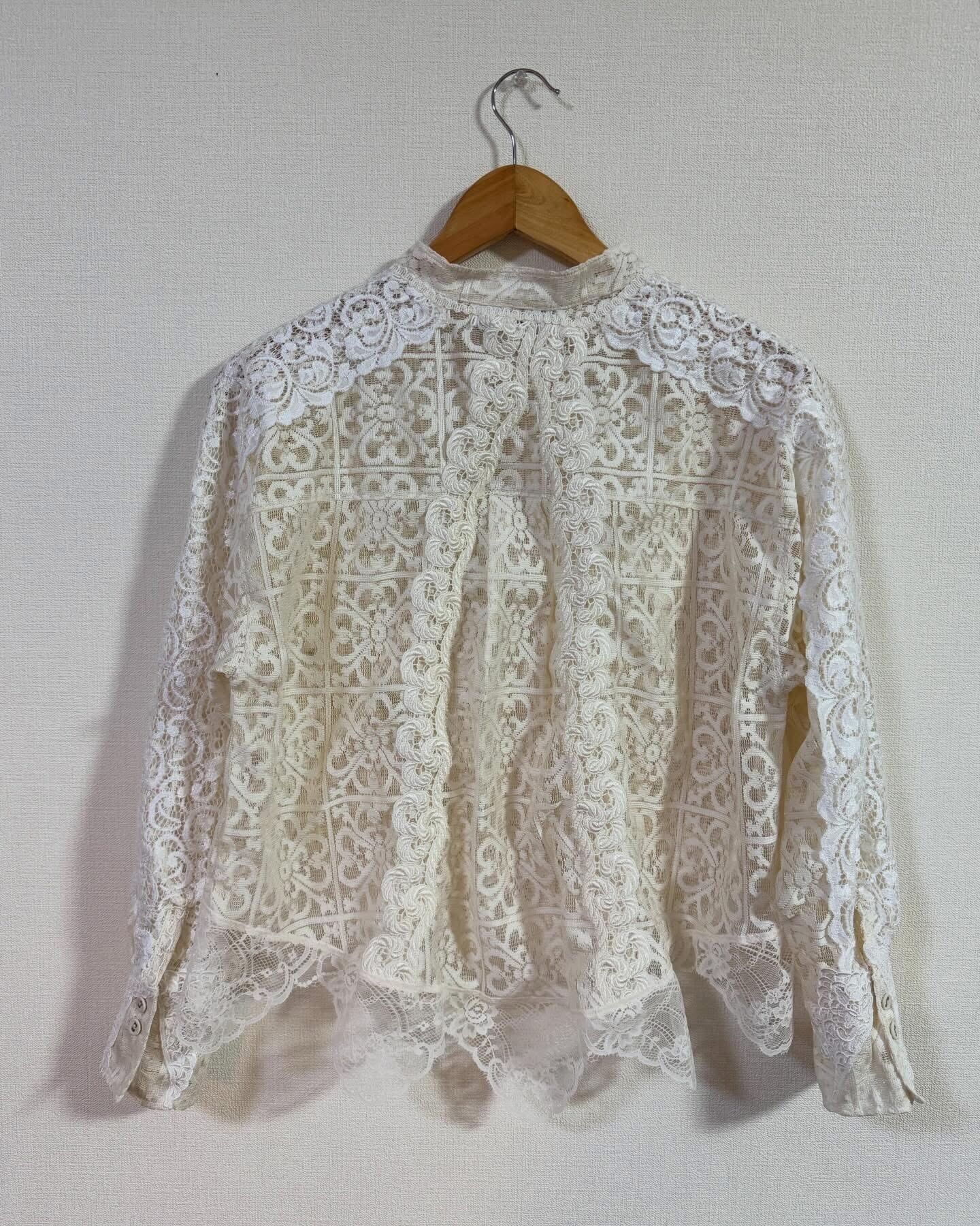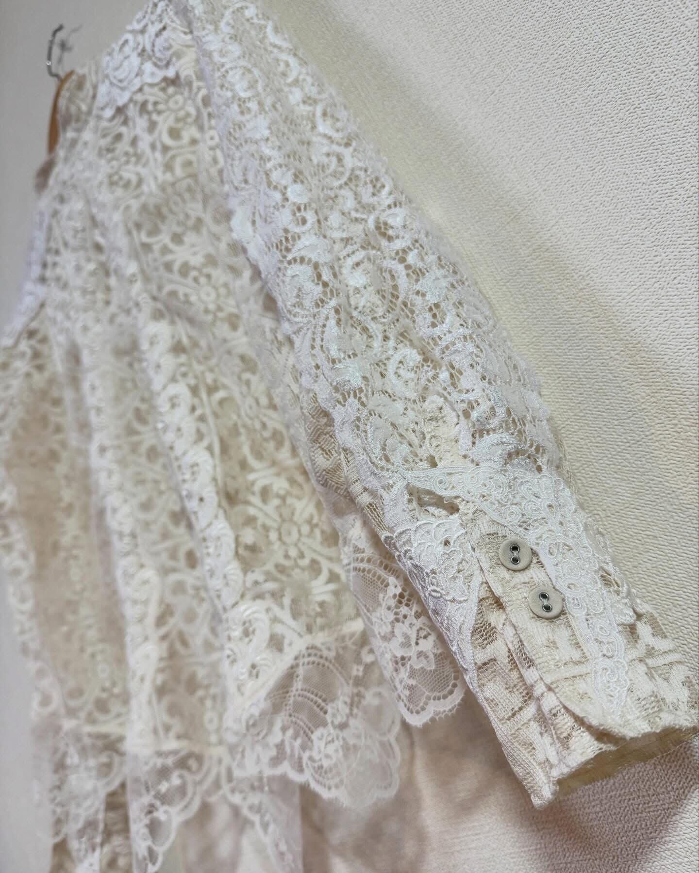 カフスにもたっぷりレースをあしらって、隅々まで美しいリメイクトップスです✨