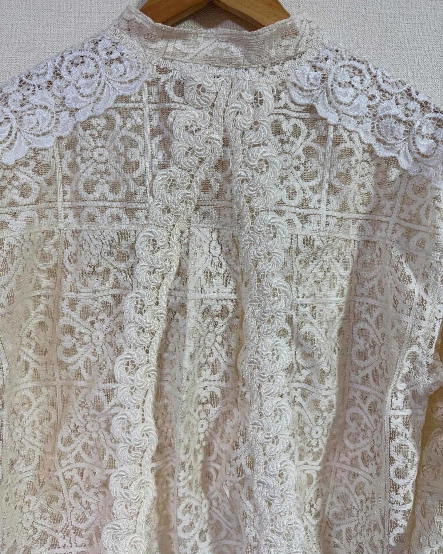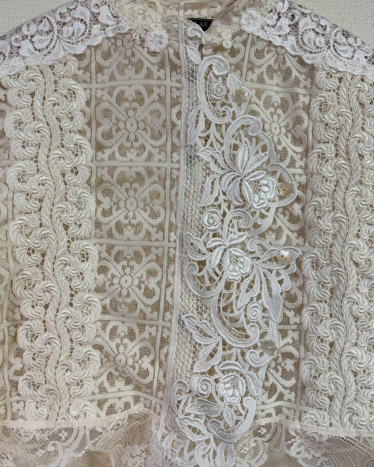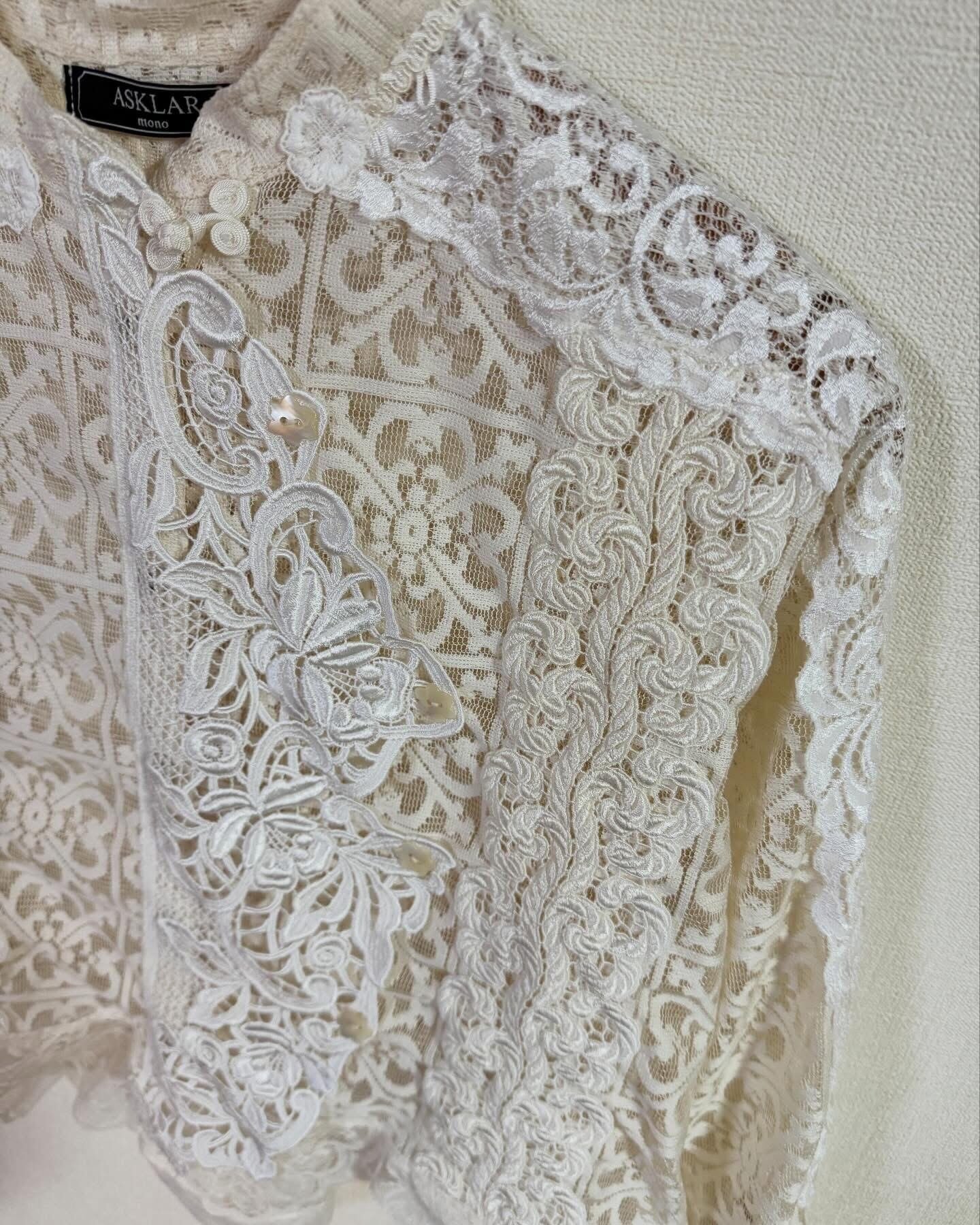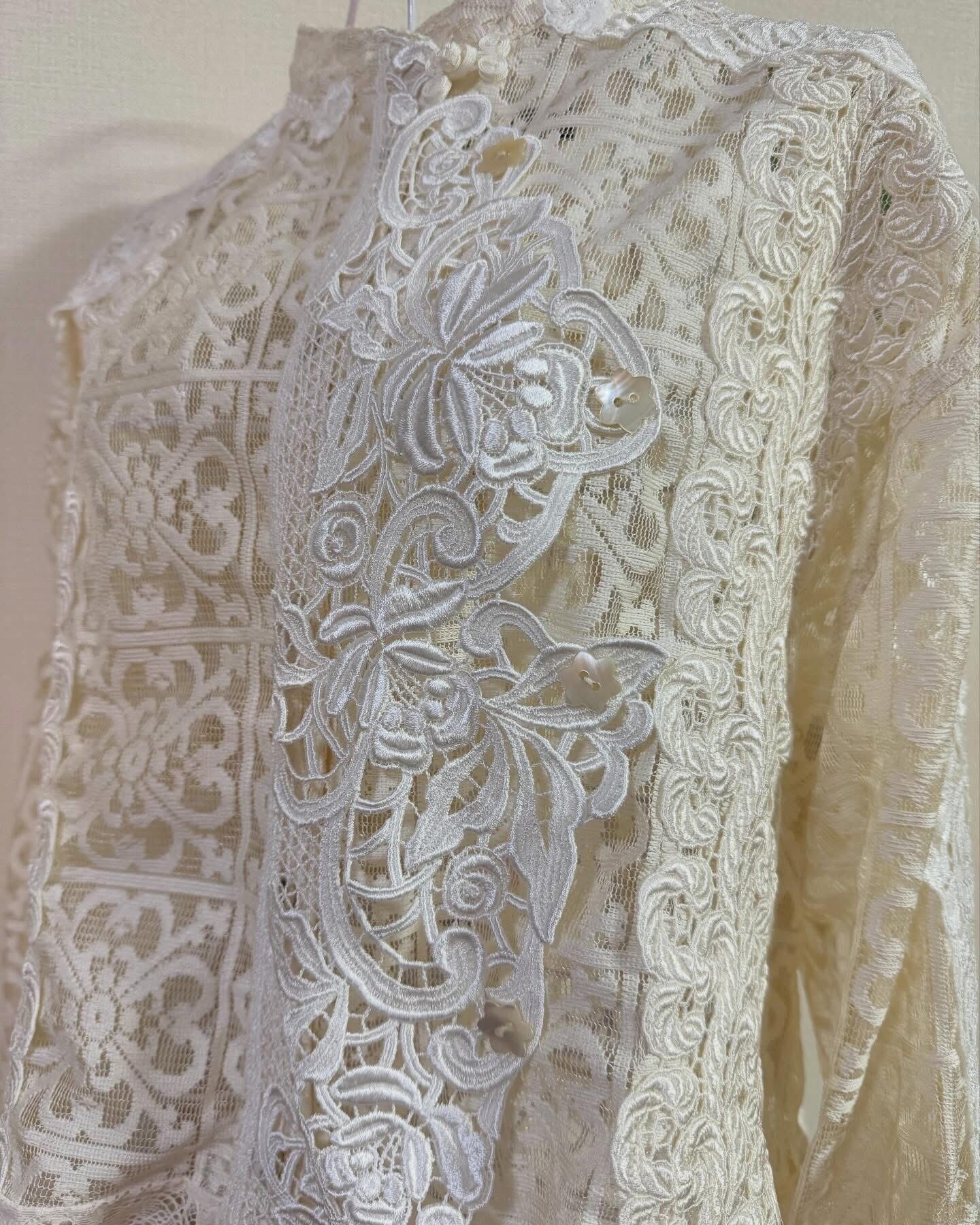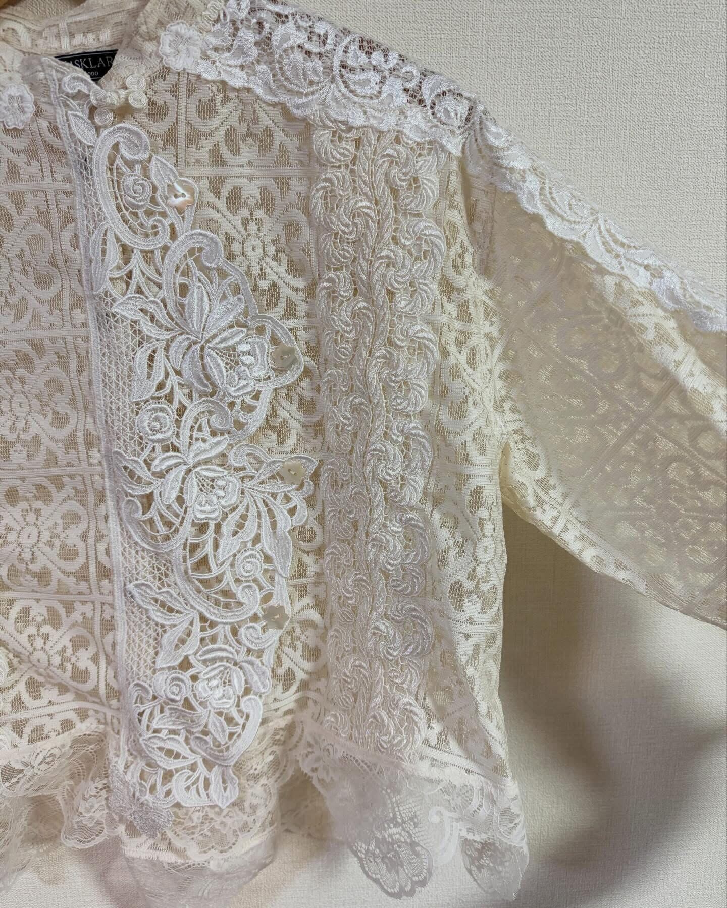 カフスにもたっぷりレースをあしらって、隅々まで美しいリメイクトップスです✨