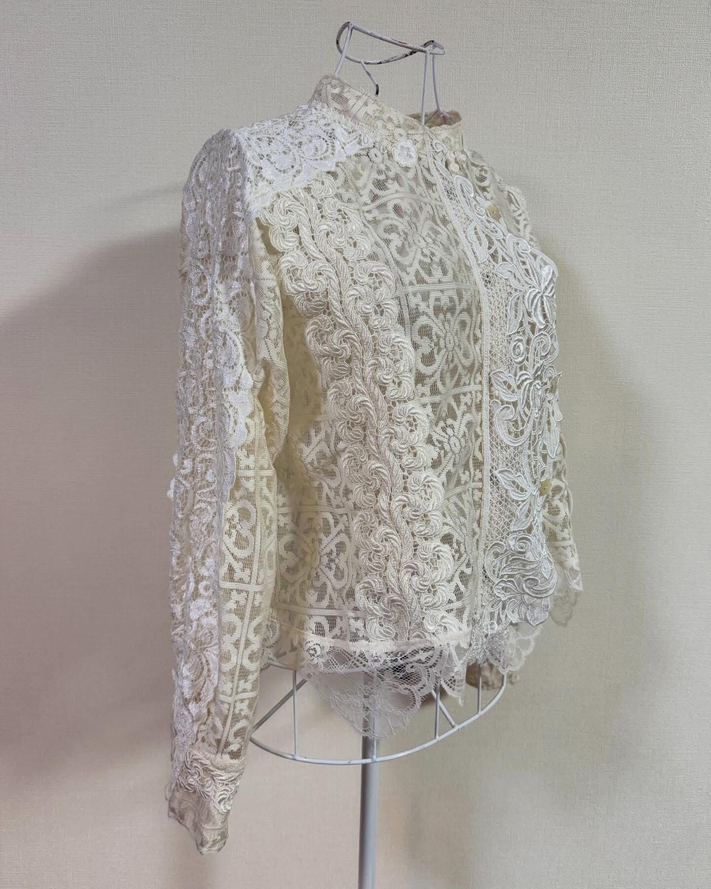 クラシカルなハイネックデザインと繊細な透け感が、かっこ良い美しさを演出してくれます✨